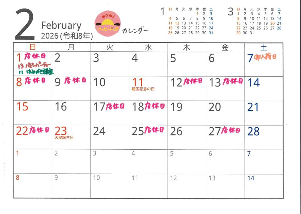 店休日、その他イベントなどです!